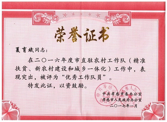 学校驻汉川市回龙镇新桥村工作队被评为市直驻农村先进工作队,驻村工作队员夏育斌同志被评为优秀工作队员。
