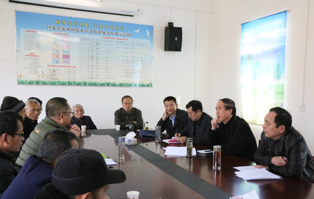 座谈会上,新桥村党支部书记徐启才汇报了该村脱贫工作取得的阶段性成效、新一年巩固扶贫工作成果的设想及面临的问题和困难。回龙镇党委书记汇报了2017年脱贫出列工作计划,同时充分肯定了驻村工作队的工作,以及对虎牙手机客户端对扶贫工作的支持和关心表示感谢,并就下一步的帮扶工作提出建议。大家就如何进一步做好、做实2017年精准扶贫工作,新一年脱贫措施,保证上级各项扶贫政策能够落到实处,进行了探讨交流。