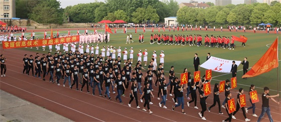 伴随着激进昂扬、催人奋进的运动员进行曲,鲜花队、旗林队、各二级学院运动员代表队、教职工代表队、裁判员代表队迈着整齐的步伐依次入场,他们精神抖擞、口号响亮、激情飞扬,博得了现场师生们的阵阵掌声。