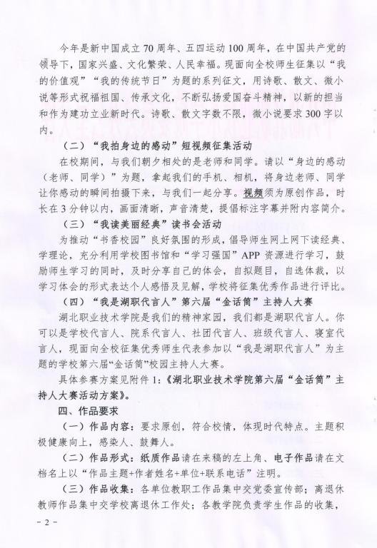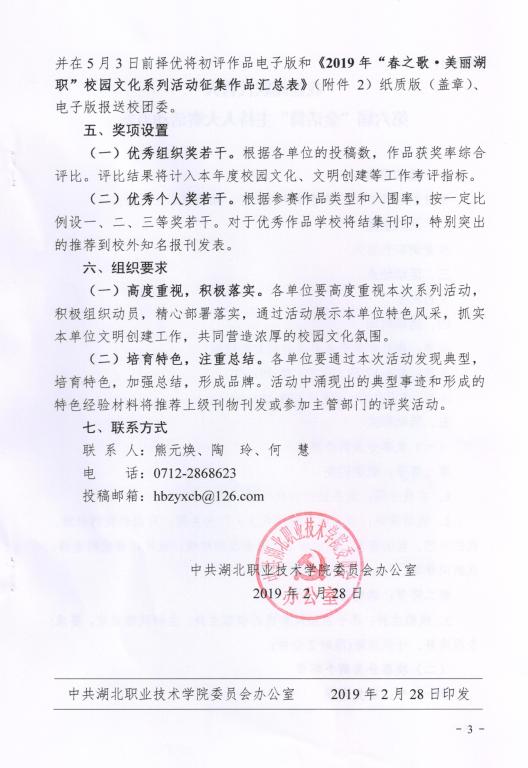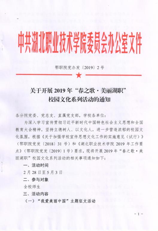 关于开展2019年“春之歌•美丽湖职”校园文化系列活动的通知