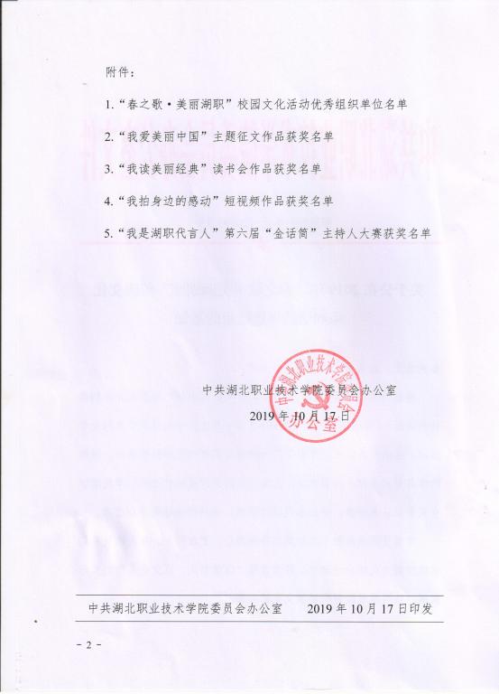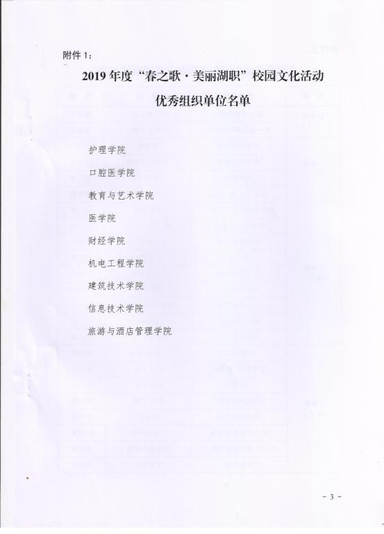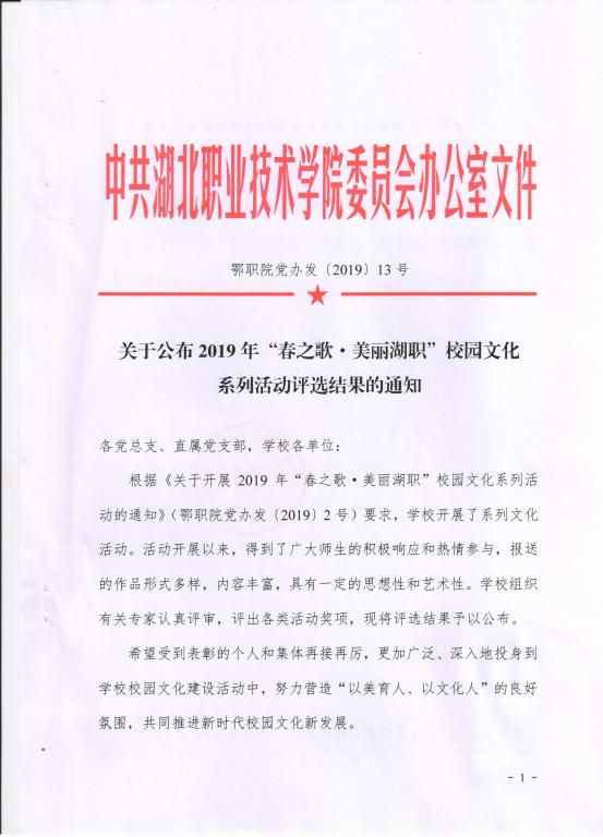 关于公布2019年“春之歌•美丽湖职”校园文化系列活动评选结果的通知