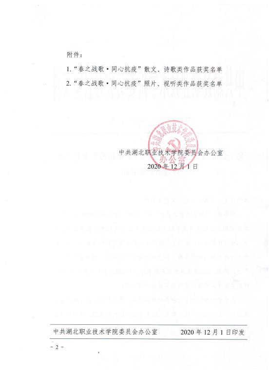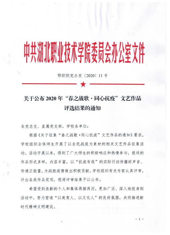 关于公布2020年“春之战歌•同心抗疫”文艺作品评选结果的通知
