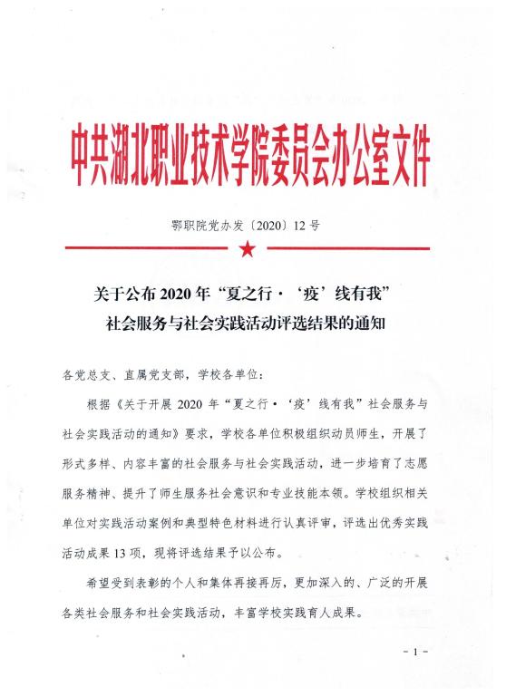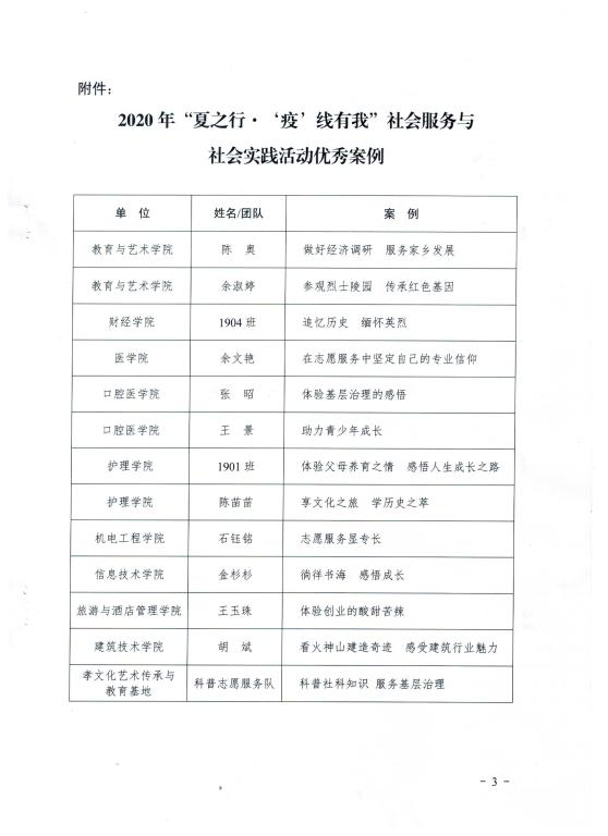 关于公布2020年“夏之行•‘疫’线有我”社会服务与社会实践活动评选结果的通知
