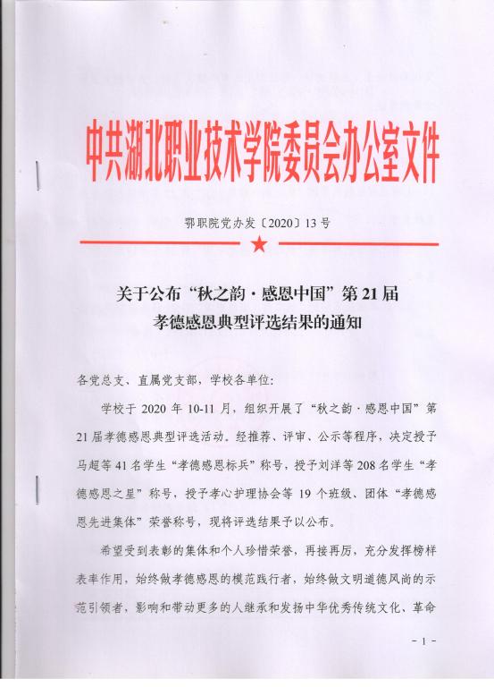 关于公布“秋之韵·感恩中国”第21届孝德感恩典型评选结果的通知