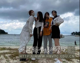 20级胡艳敏与同学们在学习之余海边游玩放松 |