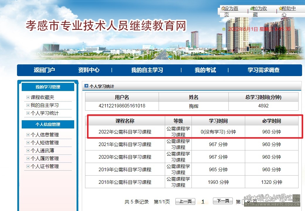 2022年度全市继续教育公需科目培训学习,统一采用孝感市专业技术人员继续教育网在线培训平台进行,网上培训学习截止时间为10月31日。