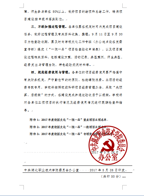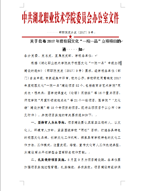 关于公布2017年度校园文化“一院一品”立项项目的通知