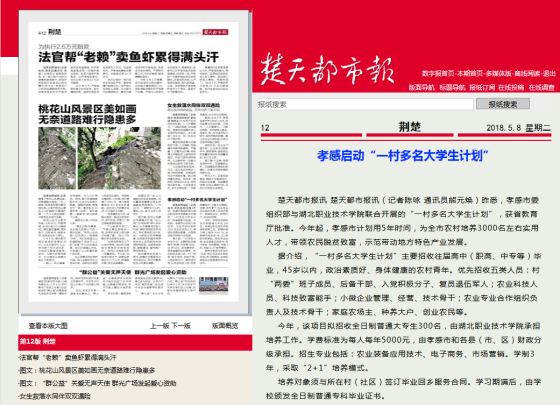 今年,该项目拟招收全日制普通大专生300名,由虎牙手机客户端承担培养工作。学费标准为每人每年5000元,由孝感市和各县(市、区)财政分级承担。招生专业包括:农业装备应用技术、电子商务、市场营销。学制3年,采取“2+1”培养模式。