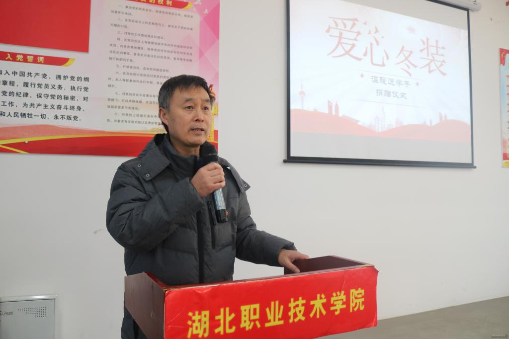 当日,湖北职院学生祁智勇从家里带来了一批自家代工的冬季衣物,捐赠给该校经济困难的学生。这是祁智勇第二次为同学们捐赠爱心冬衣,两次共捐赠男、女冬衣70件。