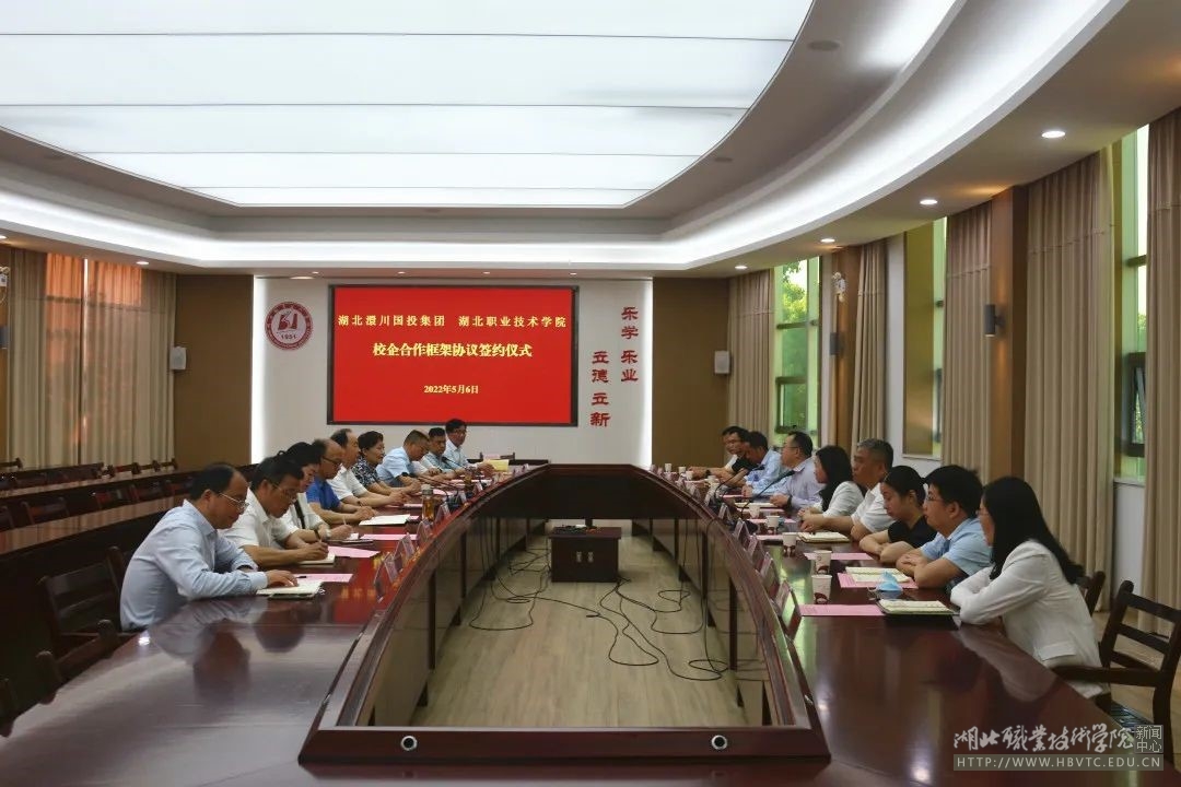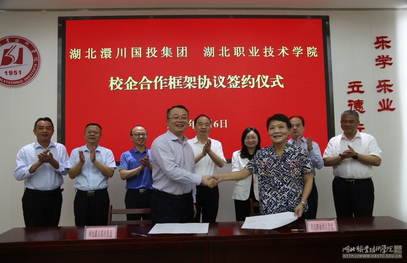 (本网通讯员:李晨涛 刘遐鹤)校企合作谱新篇,互利共赢谋发展。5月6日上午,学校与湖北澴川国投集团举行校企合作框架协议签约暨湖北澴川国投集团研学院湖职基地揭牌仪式。澴川国投集团党委副书记、总经理陈情及集团班子成员,学校党委书记郭国文,党委副书记、校长朱虹,党委委员、副校长白梦清、杨立明及双方相关部门负责人等出席签约及揭牌仪式。