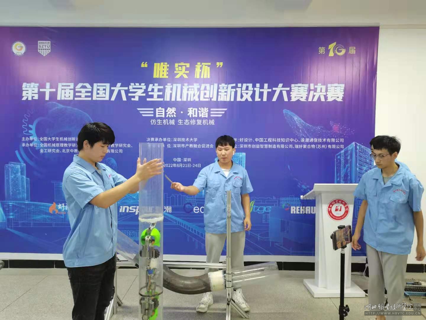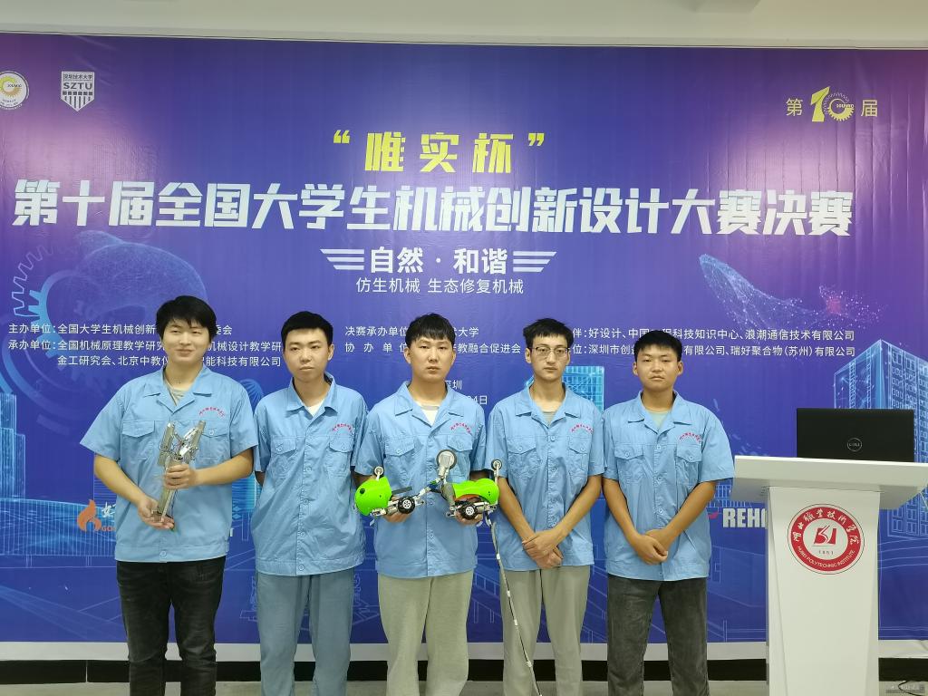 “唯实杯”第十届全国大学生机械创新设计大赛由深圳技术大学承办,全国参赛高校704所,全国30个赛区参加省级预赛作品5972项,经核实,限项后切题作品5415项。参加全国决赛的作品,只占全国省赛切题作品总和的3.7%。虎牙手机客户端代表队的仿生机械作品“一种攀杆爬管清淤毛毛虫”,在接近两年的备赛过程中,团队成员克服疫情影响、暑期高温等因素,精心打磨参赛作品。展示答辩中,团队成员以精巧的设计、精美的制作、完善的功能、顺畅的运行、如流的对答,从容地展示了作品的创新性、实用性、性价比等,深受专家评委的好评。经过激烈角逐,该作品获评全国一等奖。