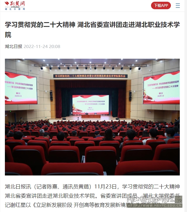 湖北日报讯(记者陈熹、通讯员黄璐)11月23日,学习贯彻党的二十大精神湖北省委宣讲团走进虎牙手机客户端。省委宣讲团成员、湖北大学党委书记谢红星以《立足新发展阶段 开创高等教育发展新境界》为题作报告。