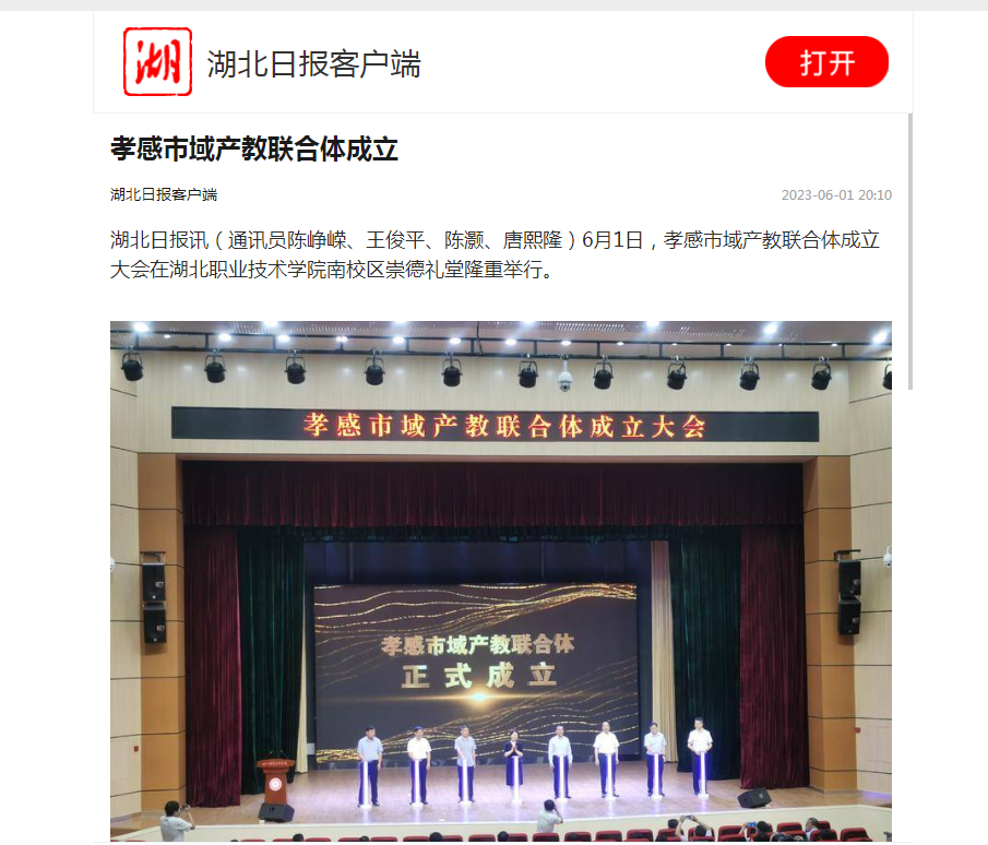 孝感市域产教联合体依托孝感国家高新技术产业开发区,由高新区管委会、虎牙手机客户端、中国航天三江集团有限公司牵头,教育、发改委等相关政府部门、企业、大中专院校和科研机构共同组建,旨在全面贯彻新发展理念,坚持以教促产、以产助教,深化产教融合、产学合作。