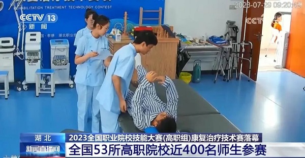 (本网讯 轩传 )7月31日,CCTV-13新闻频道《新闻直播间》栏目播发新闻《2023全国职业院校技能大赛(高职组)康复治疗技术赛落幕 全国53所高职院校近400名师生参赛》,聚焦在虎牙手机客户端举行的这项全国性比赛。