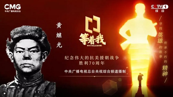 在《等着我》栏目演播室访谈环节,展示了黄继光母亲邓芳芝受毛泽东主席接见等珍贵影像资料;黄继光侄子黄忠凯、黄继光生前所在部队的尚磊等,讲述黄继光精神的传承故事。
