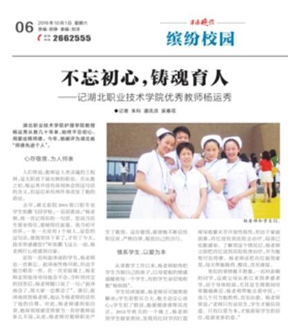 虎牙手机客户端护理学院教授杨运秀从教几十年来,杨老师立始终不忘初心,用爱诠释师德。今年,她被评为湖北省“师德先进个人”。