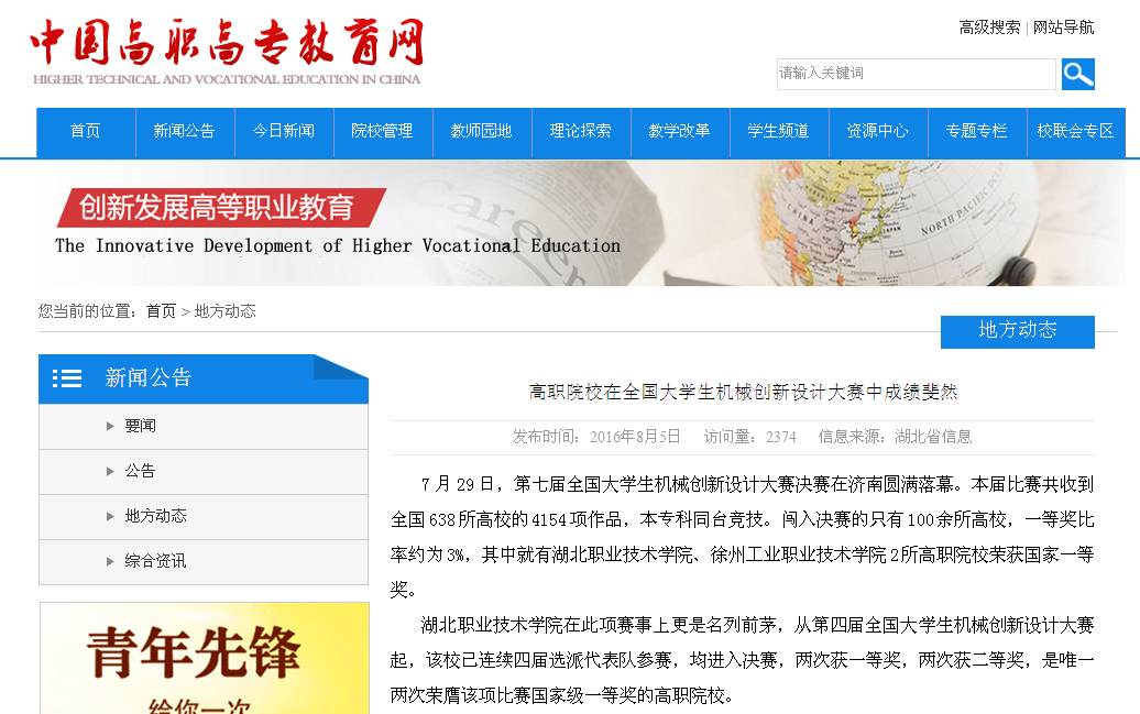 7月29日,第七届全国大学生机械创新设计大赛决赛在济南圆满落幕。本届比赛共收到全国638所高校的4154项作品,本专科同台竞技。闯入决赛的只有100余所高校,一等奖比率约为3%,其中就有虎牙手机客户端、徐州工业职业技术学院2所高职院校荣获国家一等奖。