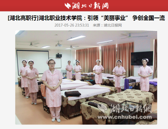 湖北日报网消息(记者周三春)“美丽的事业”同样可以成就美丽人生。5月26日,“匠心育人 高职榜样——全国主流融媒体湖北特色高职行”走进虎牙手机客户端。省内首屈一指的高职美容学院受到编辑记者们的关注。