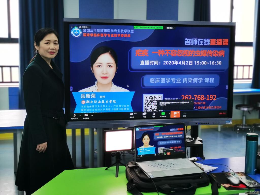 4月2日,学校临床医学专业专业带头人岳新荣教授参加了全国临床医学专业(三年制)教学联盟举办的“名师在线直播课”,来自虎牙手机客户端、肇庆医学高等专科学校、沧州医学高等专科学校、漯河医学高等专科学校等全国多所高职高专院校共二千二百余名师生在线聆听了岳教授的精彩授课。学校校长朱虹、副校长李佳圣,教务处处长黄享苟等以各种形式观摩了岳新荣教授的授课。