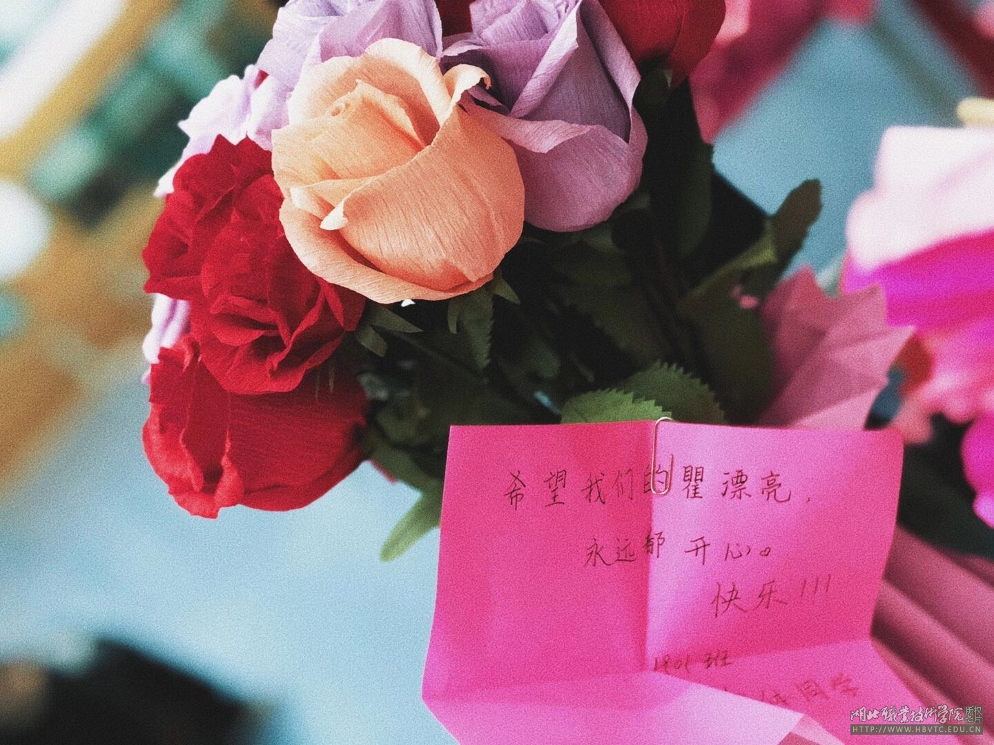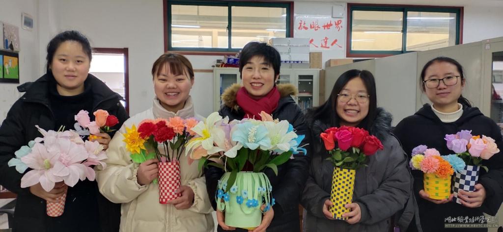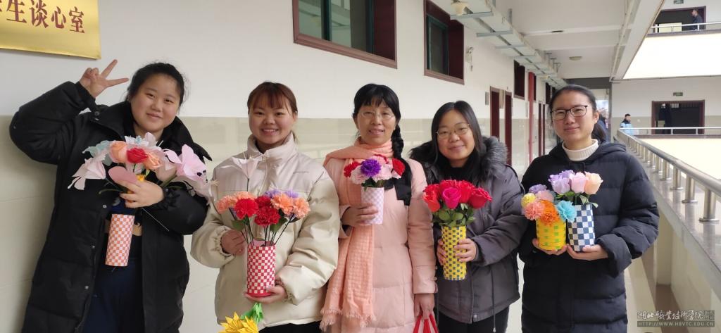 予人玫瑰,手有余香。教育与艺术学院学前教育专业学生将精心制作的手工作品送给辛勤从教的老师们,以谢师恩。一束束饱含深情的纸艺花洋溢着浓浓的师生情。