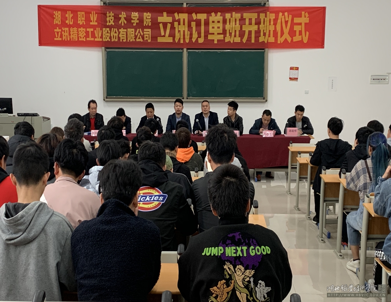 开班仪式上,机电工程学院院长袁晓洲介绍了学院近年来在专业建设、校内外实训基地建设等方面取得成果以及人才培养方面取得的成绩,希望立讯“订单班”同学们充分利用这个平台,认真学习,苦练技能,为今后进入社会打下坚实的基础。立讯精密工业股份有限公司华东大区经理孟龙介绍了公司的基本情况,并对立讯“订单班”学生提出了具体要求。