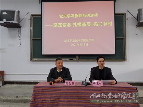 (本网通讯员:胡建刚)4月8日,学校优秀校友、全国优秀卫生院院长、湖北省乡镇名医、孝感市西河镇卫生院院长谢志强,应邀回校为医学院师生作了题为“坚定信念、扎根基层、振兴乡村”的专题报告。学校团委负责人、医学院班子成员、全科助理乡村医生班全体在校学生等聆听了报告。报告由医学院院长许三林主持。