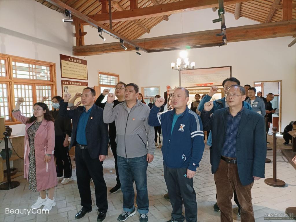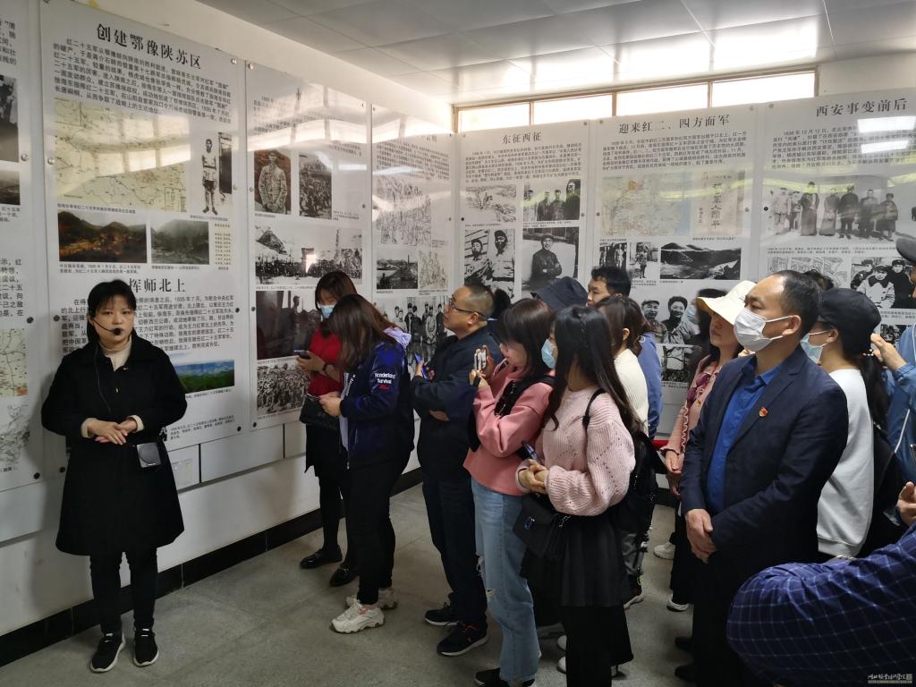 在庄严肃穆的徐海东大将及亲属烈士纪念馆,党员代表和入党积极分子代表怀着无比崇敬的心情,认真学习了徐海东大将的革命事迹,师生向徐海东大将及革命先烈敬献花圈、默哀致敬。在革命文物纪念馆和烈士遗像前,全体党员重温了入党誓词。