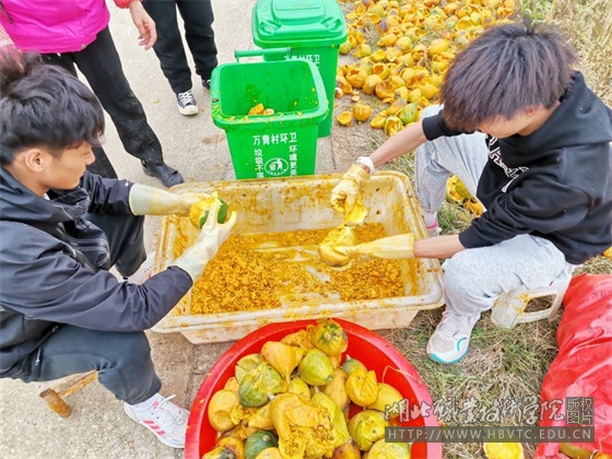 在药学专业负责人高保英的带领下,学生深入瓜蒌种植基地,认真观察瓜蒌形态和生长情况,积极参与瓜蒌采收、瓜蒌仁剥离等劳动。通过实践,学生了解了瓜蒌的生长习性和种植技术,对中药瓜蒌皮(瓜蒌的果皮)、瓜蒌仁(瓜蒌的种子)和天花粉(瓜蒌的根)的形态特征和药材性状有了更深刻的认识。期间,学生认真聆听实训基地总经理魏国红讲述回乡种植中药的创业故事,感受企业家致力乡村振兴事业的情怀。