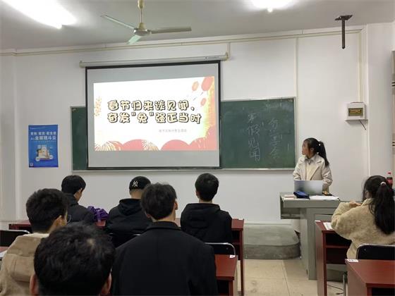 (本网通讯员:张星月)为进一步加强班风学风建设,增进同学们之间的沟通交流,了解不同地区的春节习俗、家乡变化。2月12日晚,财经与旅游学院各班级开展了“春节归来谈见闻,奋发‘兔’强正当时”主题报告活动。
