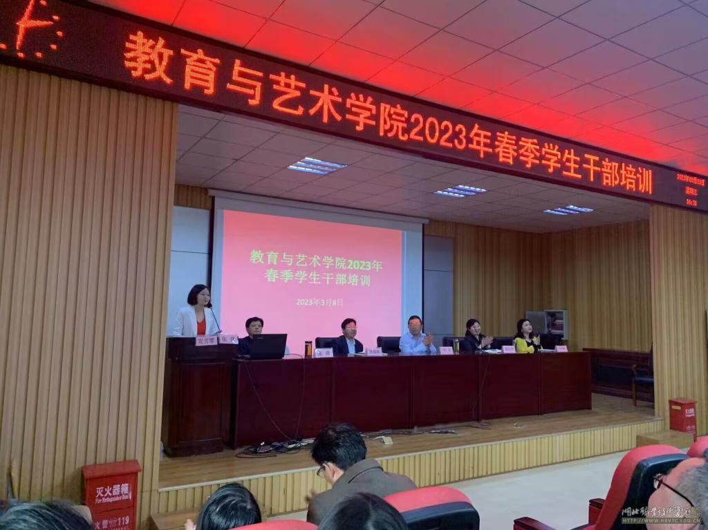 (本网讯 通讯员:张玮)3月8日下午,教育与艺术学院2023年春季学生干部培训班在师范校区报告厅顺利开班,学校党委委员、副校长梅重出席,学校党委学生工作部部长魏俊桃、学校团委书记鲁若曦,教育与艺术学院班子成员、全体辅导员、学生干部等参加了相关活动。开班仪式由教育与艺术学院副院长张玮主持。