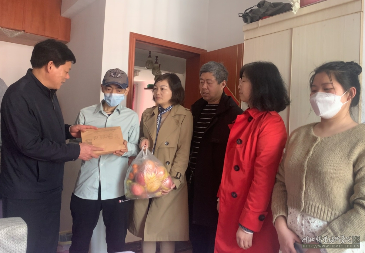 校关工委常务副主任常红生、大学生退役军人协会会长连舒畅在得知这一消息时第一时间代表大学生退役军人协会向教艺学院21010915班胡超同学送来爱心捐款2000元以及慰问信。