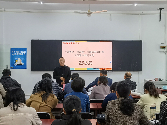 3月29日,财经与旅游学院举行了“深教改 强质量”系列教学活动—说“课堂革命”比赛专题集体教研活动。学校教务处处长黄享苟,体育部教研室主任赵星、财经与旅游学院院长徐斌华、党总支书记罗安文及全院教师参加了活动。财经与旅游学院曹艳芬主持教研活动。