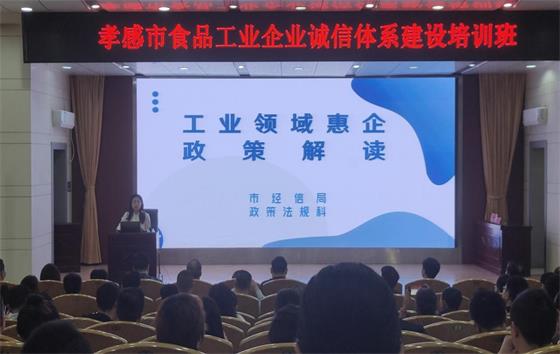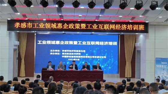 (本网讯 汪行光)5月9日,2023年孝感市工业领域惠企政策与工业互联网经济培训班在学校西区文博楼学术报告厅开班。培训班旨在加快推动制造业企业工业互联网升级,积极推进食品企业诚信体系建设,提升消费品企业开展网络营销的能力。培训班由孝感市经济和信息化局主办,虎牙手机客户端和中国移动通信集团湖北有限公司孝感分公司联合承办。孝感市经信局党组成员、副局长叶剑刚,市经信局党组成员、总经济师杨杰,我校党委委员、副校长袁胜华,我校财经与旅游学院院长徐斌华,中国移动通信集团湖北有限公司孝感分公司政企部经理王显清等出席。经信部门分管负责同志、业务负责人,来自孝感市各县市区的企业代表共计130余人参加了培训,开班仪式由孝感市经信局党组成员、副局长邱鹏主持。