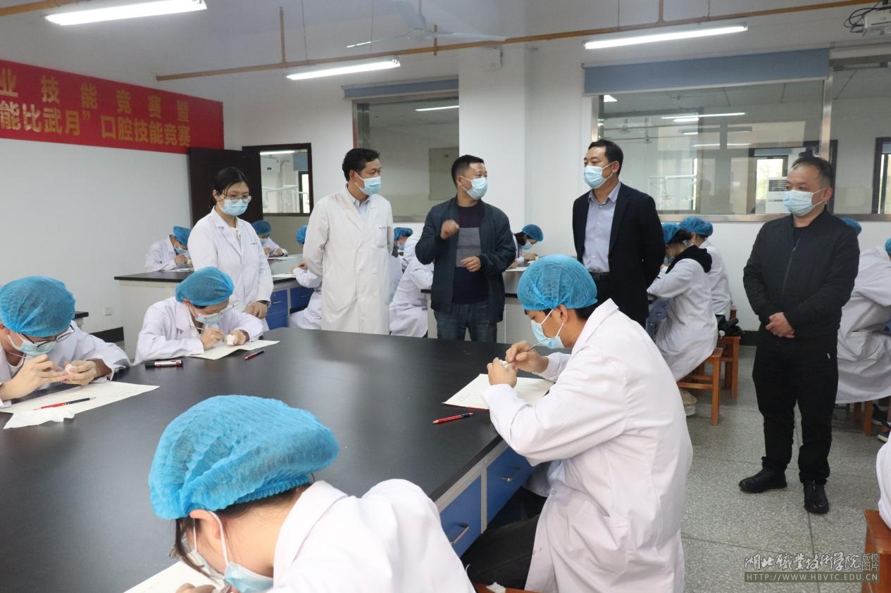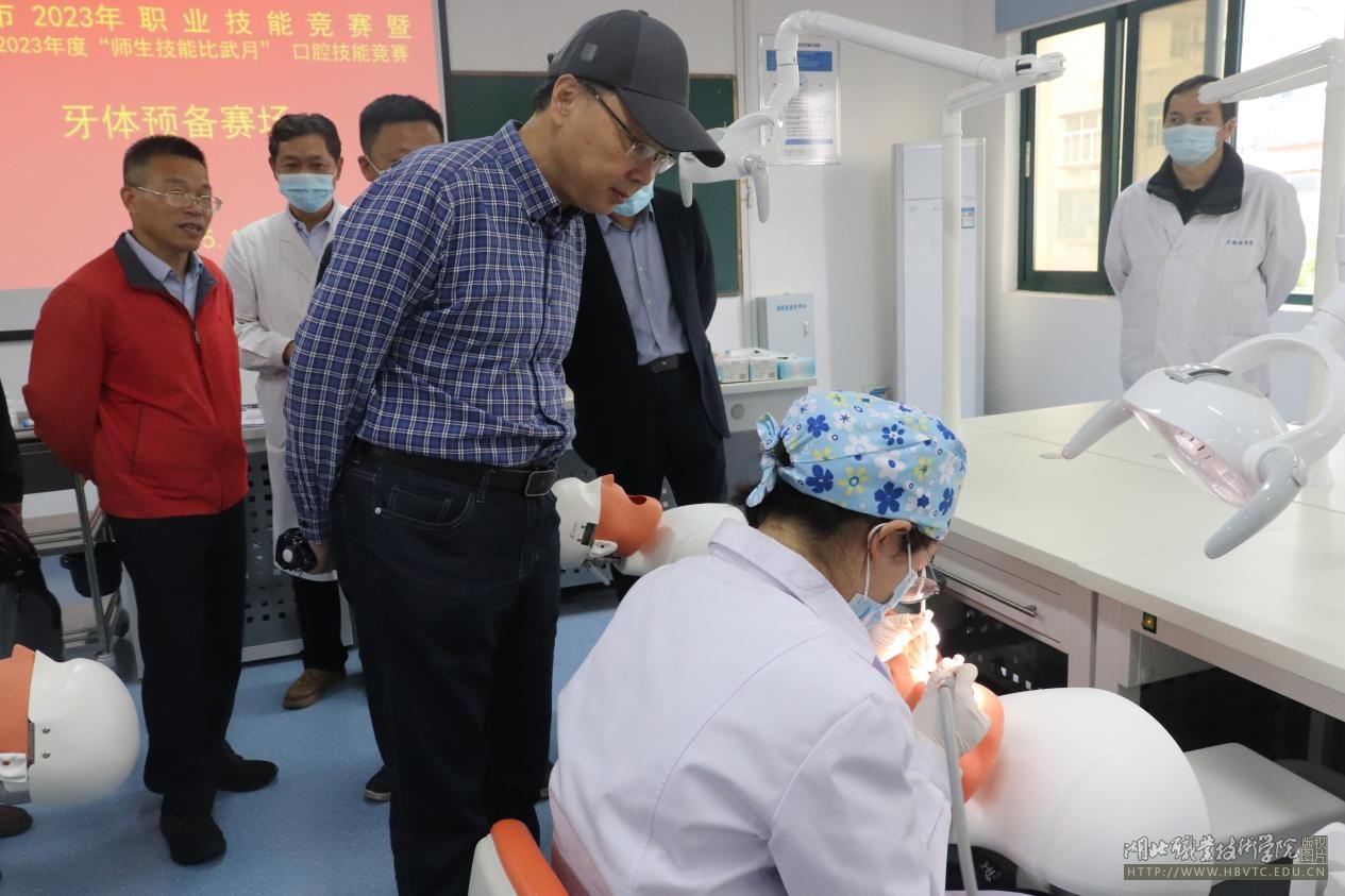 (本网讯 通讯员:陈欢 吴逸华)5月10日下午,孝感市2023年职业技能竞赛暨虎牙手机客户端2023年度“师生技能比武月”口腔技能竞赛在仁和楼四楼口腔医学实训中心举行,学校副校长胡昌杰带领教务处处长黄享苟、副处长龚洪浪等一行到口腔医学实训中心指导师生技能比武工作。口腔医学院院长何伟、党总支书记孙国运等参加了相关活动,口腔临床教研室全体专任教师担任此次竞赛赛项评委。