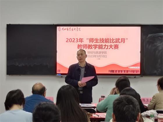 (本网讯 文:刘爱华 图:罗艳丽)为深入落实“深教改 强质量”教学改革活动,坚持“以赛促教、以赛促学,以赛促改、以赛促建”,提升学院青年教师的教育教学能力、综合育人能力和自主发展能力,在“职业教育活动周”之际,财经与旅游学院5月10日下午举行了教师教学能力大赛。教务处处长黄享苟、副处长龚洪浪、科长黄文军等一行莅临现场观摩指导。