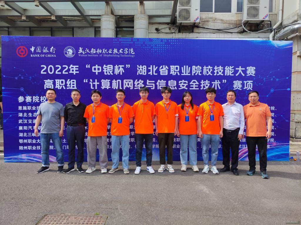 (本网讯 叶潘)5月12至14日,2022年“中银杯”湖北省职业院校技能大赛高职组“计算机网络与信息安全技术”赛项在武汉举行,来自全省43所高职高专院校的推荐队和抽测队参加了比赛。经过激烈角逐,信息工程学院推荐队选手张键、彭旭、罗思遥荣获团体一等奖,抽测队选手韦天翔、郑佳乐、董雨晴荣获团体三等奖,指导教师孙健、叶潘荣获优秀指导教师奖。