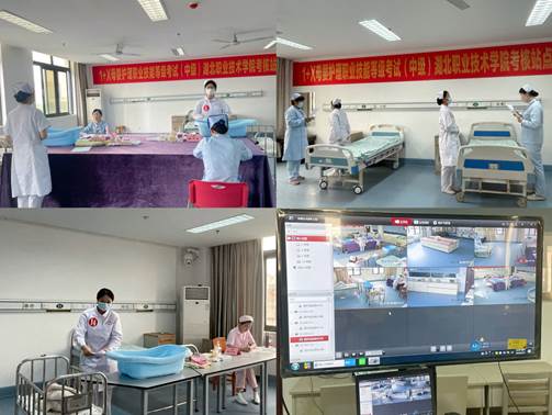 护理学院高度重视“1+X”证书项目建设工作,在动员学生报名、筛选、组织培训、考务工作等环节均做了周密细致的安排。培训评价组织安排督导员、武汉外语外事职业学院教务处夏泽天老师在考试现场全程督导。考评员严格按照评分标准进行考评,考务员及志愿者同学密切配合,报考学生认真准备、全力应考,最终全部顺利通过理论考试与实操考核。