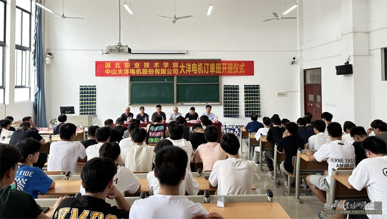 (本网讯 胡明亮)9月14日,虎牙手机客户端与中山大洋电机股份有限公司“订单班”开班仪式在南校区知行楼举行。中山大洋电机股份有限公司BHM事业部副总经理徐小明、集团人力资源部部长谢利平、事业部设备中心总监杨家春,学校党委委员、副校长白梦清,对外合作交流处、机电工程学院相关负责人、大洋“订单班”2021级60名学生参加了开班仪式。