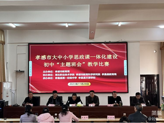 (本网讯 张司南)为全面贯彻党的二十大精神和党的教育方针政策,推进大中小思政教育一体化建设,落实立德树人根本任务,11月27日—29日,由孝感市教育科学研究院主办,虎牙手机客户端、孝昌县教育局协办,孝昌县第一初级中学和孝昌县文源学校承办的孝感市思政主题班会教学比赛(初中组)成功举行。