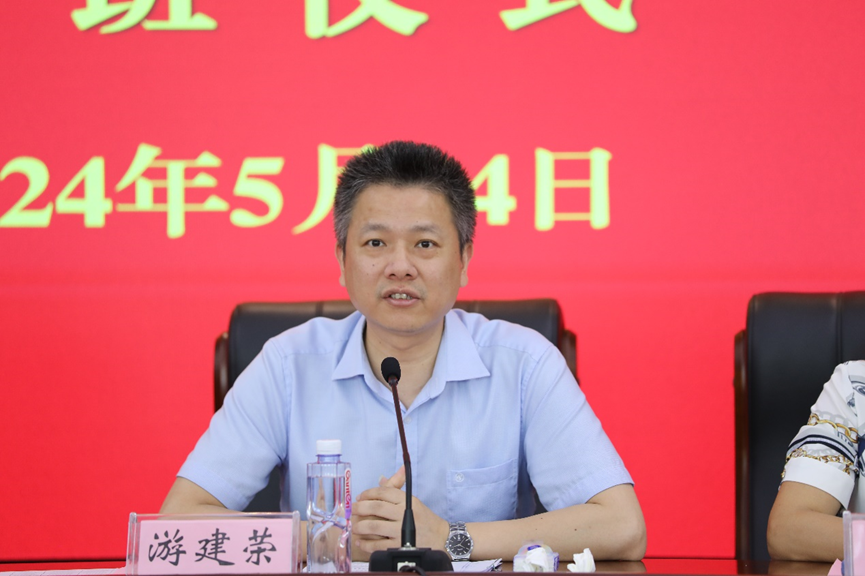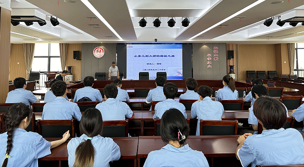 游建荣介绍了中国航天三江集团有限公司的基本情况。中国航天三江集团有限公司隶属于中国航天科工集团有限公司,是中国固体火箭研制生产的主体与技术抓总单位,是国有特大型高科技企业和国防科技工业的骨干力量。他强调,发展新质生产力,航天智造大有可为,航天事业的发展离不开高素质技能型人才参与、推动。他提出了殷切的嘱托,希望同学们在学习期间认认真真,踏踏实实的实践,用实际行动获得知识,用自己的青春,用自己的实力,为中国航天事业贡献力量。