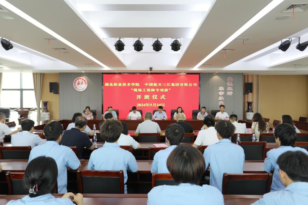 (本网讯 刘欣 )5月24日,湖北职院与中国航天三江集团“现场工程师班”开班仪式在我校南校区图新楼601会议室举行。校长郭沙、中国航天三江集团有限公司人力资源部部长游建荣等出席仪式并讲话。仪式由副校长胡昌杰主持。