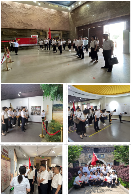 第三站,大悟宣化店中原突围纪念馆、湖北会馆、周恩来与美蒋代表谈判旧址。一进中原突围纪念馆,入眼即是一尊战士巍然挺立的雕像,左手紧握拳头,右手高举长枪,神情激昂刚毅,令人肃然起敬。在讲解员的带领下,大家回顾革命峥嵘岁月,缅怀革命先烈的丰功伟绩。在英勇就义的烈士遗像前,全体党员严肃默哀,对革命烈士三鞠躬,为先烈前赴后继、舍生忘死的大无畏精神致以崇高的敬意和深切的缅怀。