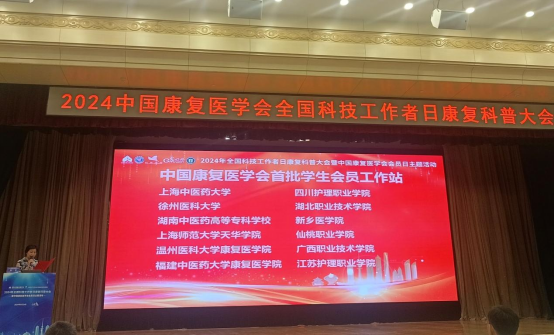 (本网讯 杨毅 王勇)5月24日—26日,2024中国康复医学会全国科技工作者日康复科普大会康复科普大会在青岛召开。会上,我校获批首批“中国康复医学会学生会员工作站”。