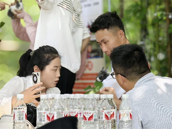(本网讯宋巍)“王老师,这是我直播卖出去的第一只兔子!……”在财经与旅游学院电子商务专业宠物兔养殖基地现场实训课堂上,电子商务专业(一村多)学生蒋春凤兴奋地对企业兼职教师王乙龙说着刚刚在抖音直播的体会和感受。