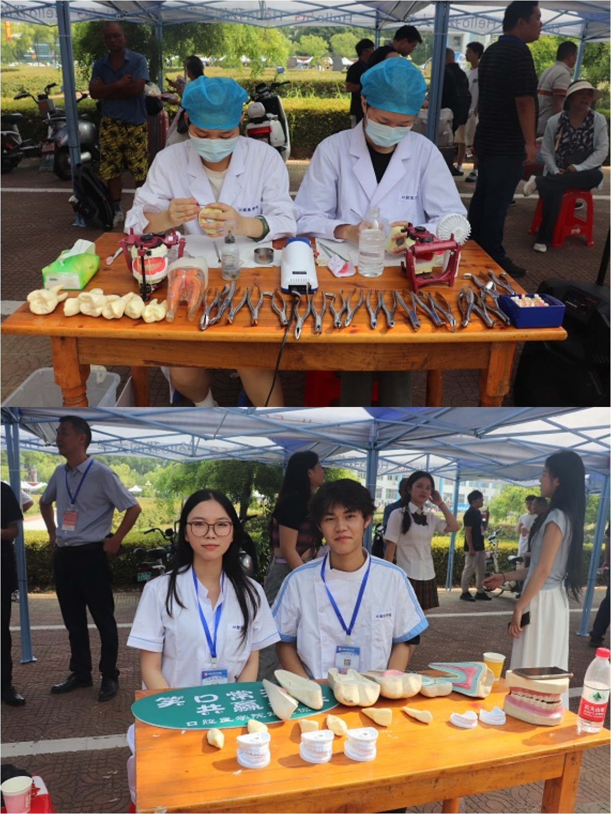 在口腔医学院班子成员的带领下,口腔医学院老师和学生志愿者们热情洋溢,耐心地解答新生们的问题,有序的引导他们熟悉校园环境,帮助他们解决困难。无论是帮忙搬运行李,还是指引前往宿舍的道路,他们的身影成为了校园里一道亮丽的风景线。在迎新点,口腔技能竞赛选手们正在进行雕牙展示。
