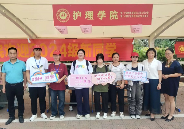 教育与艺术学院的优秀学生手工作品、财经学院的“数智财旅”宣讲、医学院的中医药材标本展示、口腔医学院的现场“牙雕”操作,都向新生和家长们秀了一把“花式迎新”。随着“大健康”“大康养”理念深入人心,“智慧健康与养老服务”专业群今年新生报到率突破96%,充分体现社会各界对我校专业群建设的认可。“我和家人都很看好康养产业,将来很有市场好就业,前景广阔”,来自孝感市安陆市的陈玲、孝感市汉川市的涂子豪等同学,都是第一志愿填报智慧健康养老服务专业。