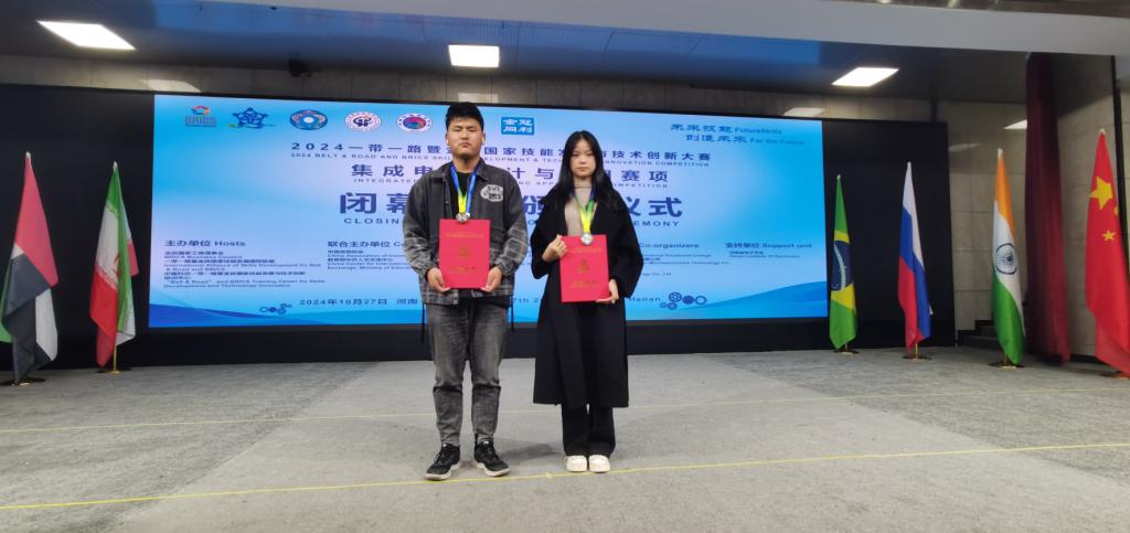 (本网讯 余芳)近日,2024年“一带一路”暨金砖国家技能发展与技术创新大赛集成电路设计与应用全国总决赛(高职组)在河南机电职业技术学院隆重举行,来自全国13个省份、52个高校的113支队伍齐聚一堂,同台竞技。经过激烈角逐,由我校机电工程学院薛常鑫、周伟教师指导的袁林飞、黄焰霞2名同学凭借精湛的专业技能,荣获PCB设计与应用赛道二等奖,两位老师获得优秀指导教师奖,学校获得优秀组织奖。
