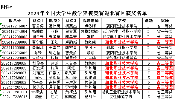 (本网讯邹小云)2024年全国大学生数学建模竞赛成绩于近日公布,我校9支代表队在激烈的角逐中脱颖而出,斩获国家二等奖1项、省一等奖1项、省二等奖4项、省三等奖2项,共计8项奖项。获奖率达88.9%,创我校获奖率历史新高。