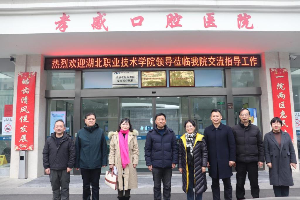 在孝感口腔医院,何伟一行与该院院长高银艳等交流。双方围绕口腔医学人才培养、师资队伍建设、教学资源开发、产教融合实训基地建设、口腔医疗从业人员技能社会培训、科研合作等多个议题进行了深入讨论,并达成了一致意见。双方还初步探讨了建立口腔共建产业学院的可能性,并就口腔医学执业医师考试考站建设交换了意见。