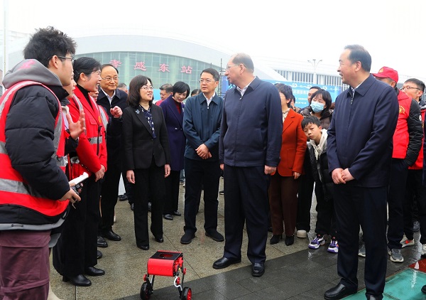 (本网讯 陈灏 综合报道)3月1日,2025年孝感市“学雷锋 做志愿 服务支点建设建新功”主题活动暨重点志愿服务项目启动仪式在孝感东站站前广场举行。市委书记胡玖明,市委副书记、市长吴庆华,市委常委、宣传部部长吴琼,我校党委书记郭国文等出席启动仪式。我校荆楚石榴红志愿服务队“爱老敬老 孝满澴川”志愿服务项目、精诚康复志愿服务队“健康基层行 志愿暖民心”志愿服务项目成功入选2025年孝感市级重点志愿服务项目并现场开展志愿服务。我校多支志愿服务队参加启动仪式。